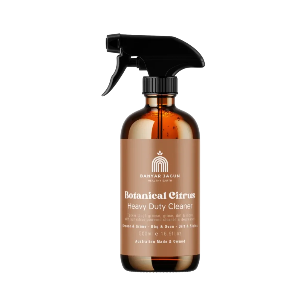 Power meets nature! Our Banyar Jagun Heavy Duty Cleaner with Botanical Citrus tackles grease, grime, oil, and stubborn stains on kitchen counters, bathroom surfaces, garage floors, patios, and industrial areas. Plant-based and eco-friendly, it leaves surfaces sparkling clean with a fresh, uplifting citrus scent—safe for family, pets, and the planet.
